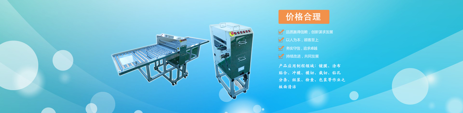 清潔機、菲林片清潔機、薄膜清潔機、膜片清潔機、靜電除塵機等表面微塵處理機械設備,銅泊清潔機、壓膜機,底片貼膜機,鋼板表面清潔機、鋼板板面清潔機,東莞市偉盟自動化機械有限公司,是一家集研發(fā)、生產、銷售、工程服務為一體的專門從事工業(yè)自動化設備應用的高科技企業(yè)。